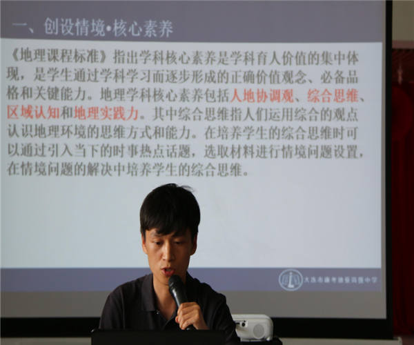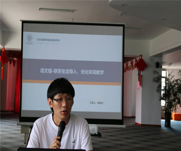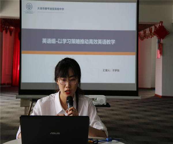 于梦怡老师介绍了英语组“以学习策略推动高效英语教学”的情况。英语组老师在教学实践中,以课程标准为指导,采取促进学生语言学习和语言运用的学习策略,着力解决学生英语学习的困难,帮助学生克服畏难情绪,促进学生逐步发展自主学习的习惯和能力。