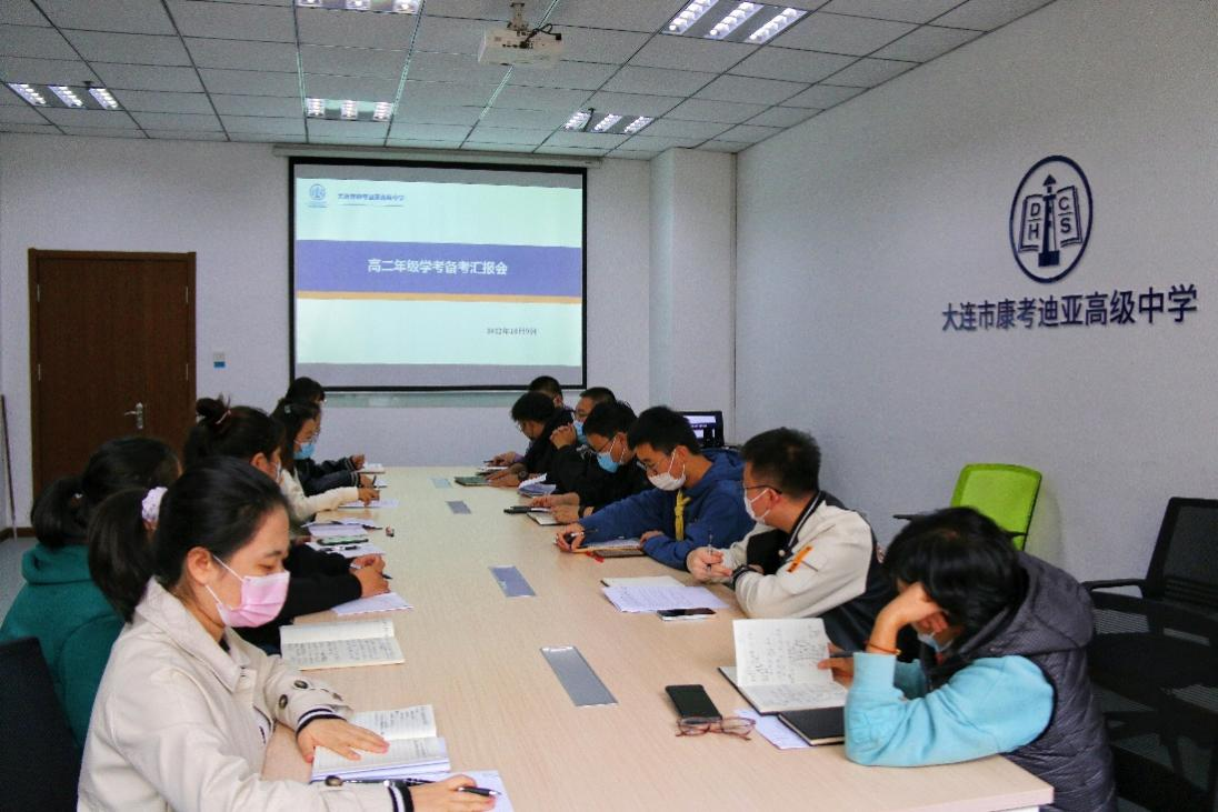 高二年级各学考科目备课组分别从学生学情、备考计划、存在的问题、解决措施等四个方面汇报了各学科的复习备考情况。各班主任围绕班级学生的学习状态、存在的问题、管理措施等几个方面做了具体汇报。