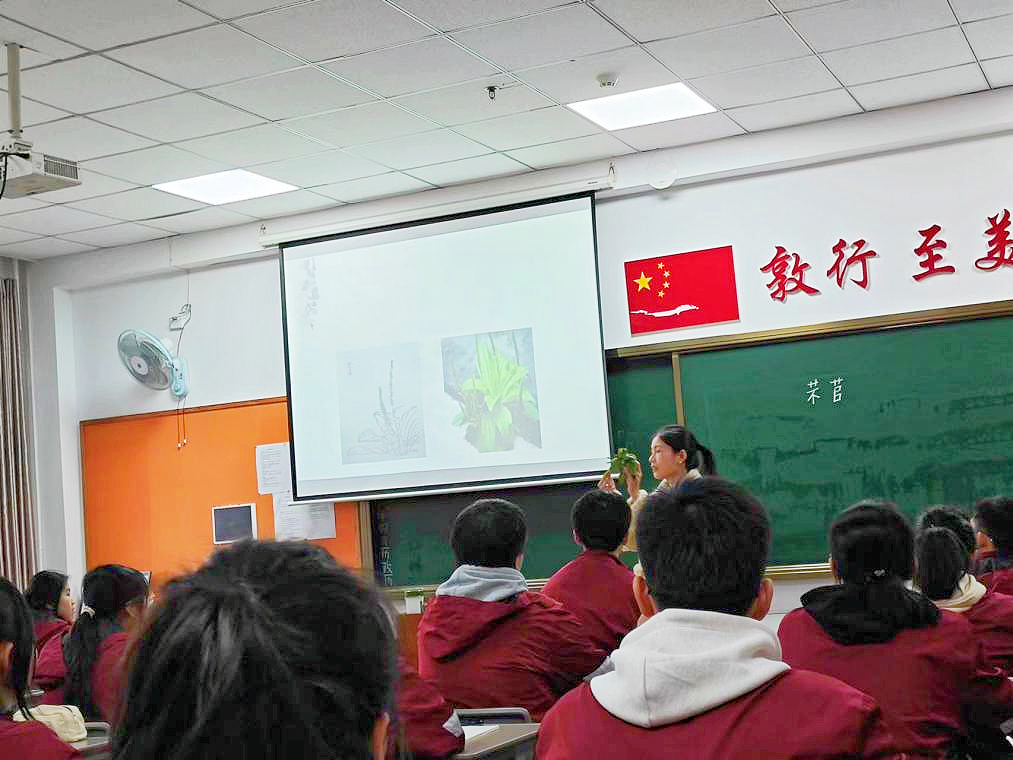 语文教研组青年教师曹晶晶有幸得到督导组专家的听评课。该教师当日执教的《芣苢》《插秧歌》,其单元主题为“劳动光荣”。曹晶晶老师在教学师父的指导下分别从诵劳动之美、品劳动者之思、论劳动之观三个方面进行了讲授,学生以小组讨论的形式展开学习,师生互动频繁,表现出较强的课堂驾驭能力。本堂课重点引导学生品读文本,对课文内容和情感进行品读,模拟采芣苢、插秧情境,解析古人的劳动场面和内心情感,突显劳动的美好和欢乐,建构比较阅读知识体系,继承和发扬中华民族世代相传的崇尚劳动、尊重劳动、热爱劳动的美德,厚植“劳动改造世界,劳动创造文明”价值观。
