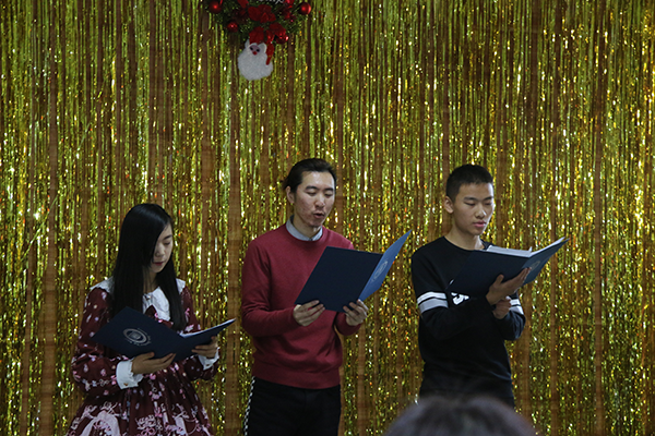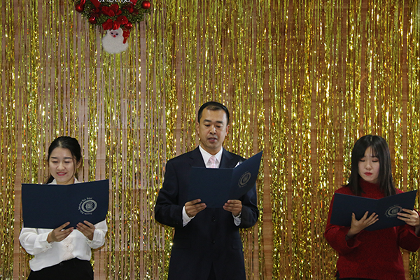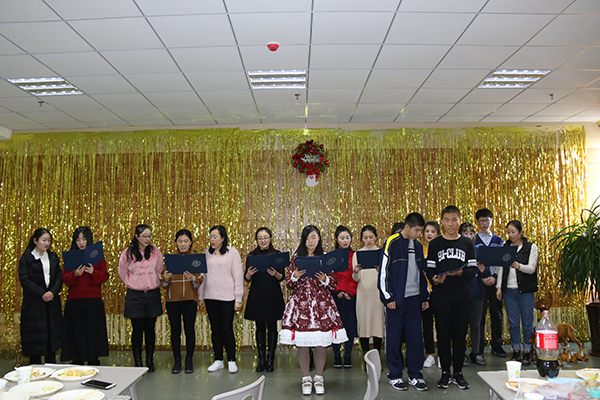 2018年12月29日中午11:30,大连市康考迪亚高级中学第一届教职工“《迎新春、贺新年》圣诞、元旦联欢会”在教学楼415举行。