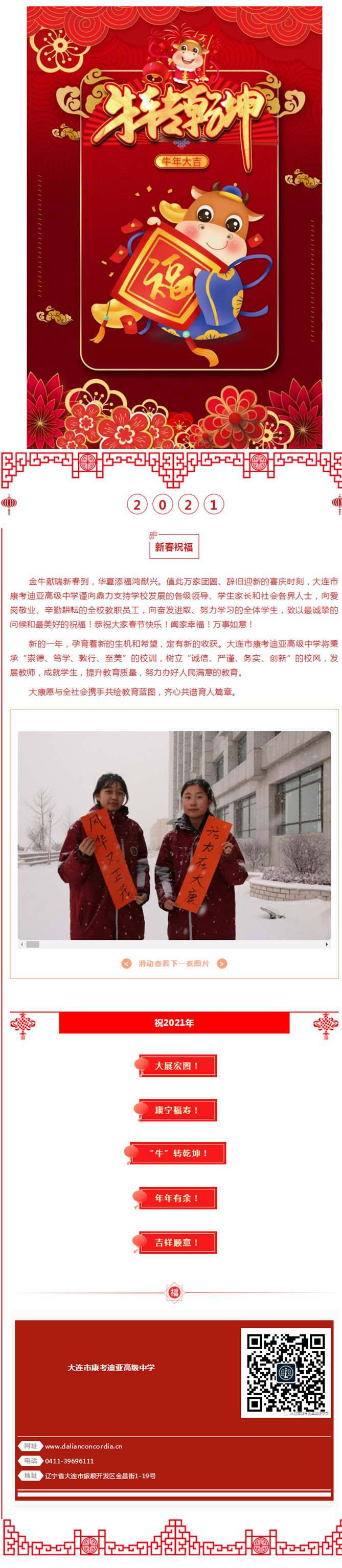 恭贺新禧!大连市康考迪亚高级中学给您拜年了!