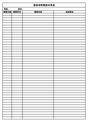 5.认真填写居家体育锻炼记录表。及时上报锻炼记录和锻炼照片。