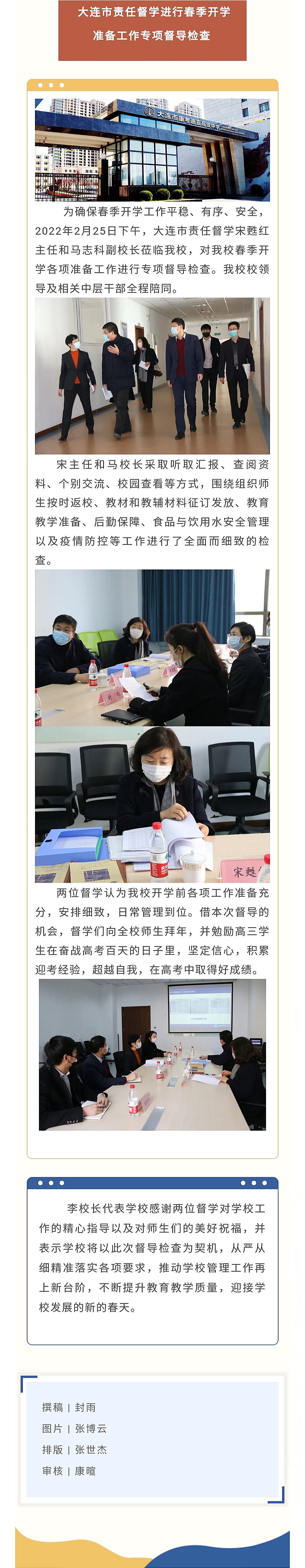大连市责任督学进行春季开学准备工作专项督导检查