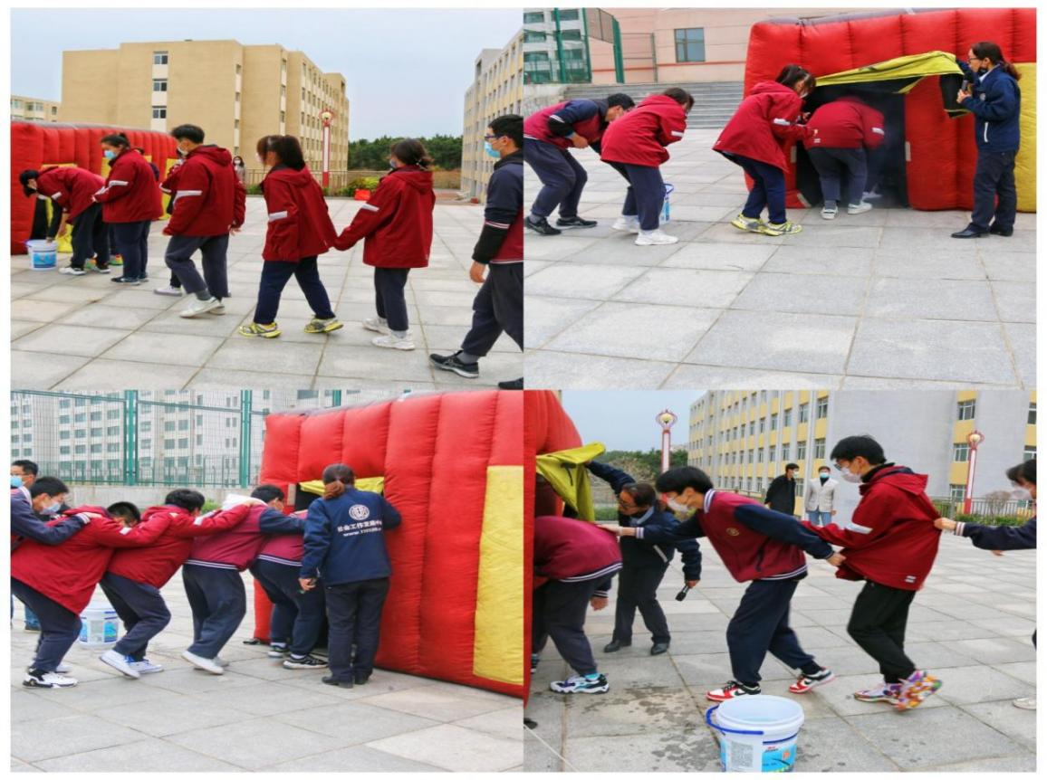 消防教官利用帐篷模拟火场燃烧空间,全程使用无毒害烟雾块进行实验。烟雾块点燃后,学生8人一组,分批穿越满是浓烟的“火场”,在仿真火场环境中,全员遵照教官讲解的要领安全地逃离了“火场”。