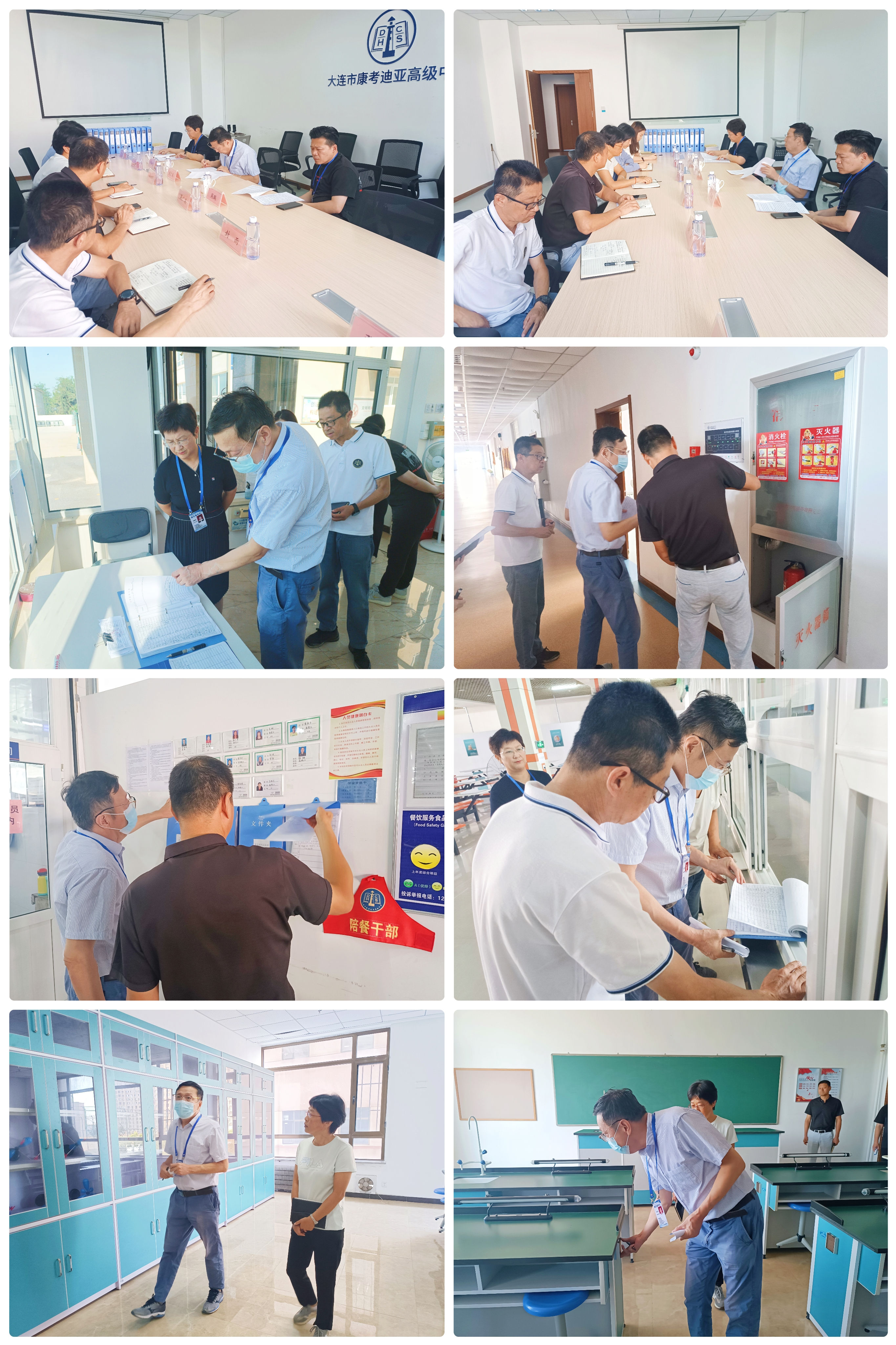 时维九月,序属初秋。为确保2023年秋季开学工作平稳有序,依据《大连市人民政府教育督导室关于做好2023年秋季开学准备工作专项督导的通知》要求,2023年9月14日,大连市人民政府教育责任督学刘广民、唐培芝、周鹏莅临我校,对学校开学保障、校园安全、开学主题教育等方面进行了专项督导,我校校级领导及相关部门负责人接待陪同检查并参加座谈。