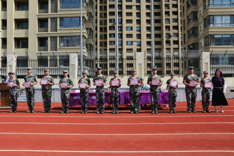 汇报表演结束后学校对本次军训中涌现出的优秀集体和先进个人进行表彰。全体师生对他们表示热烈祝贺。在接下来的开学典礼仪式上,学生代表、家长代表、教师代表分别发言,寄语新生怀抱梦想,奋勇拼搏,努力前行,不负青春。祝福学校蒸蒸日上,越办越好。