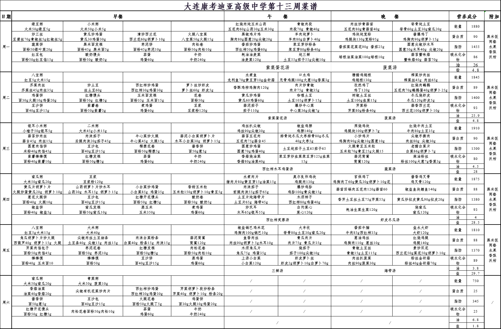 大连市康考迪亚高级中学第十三周食谱(5.26-5.30)