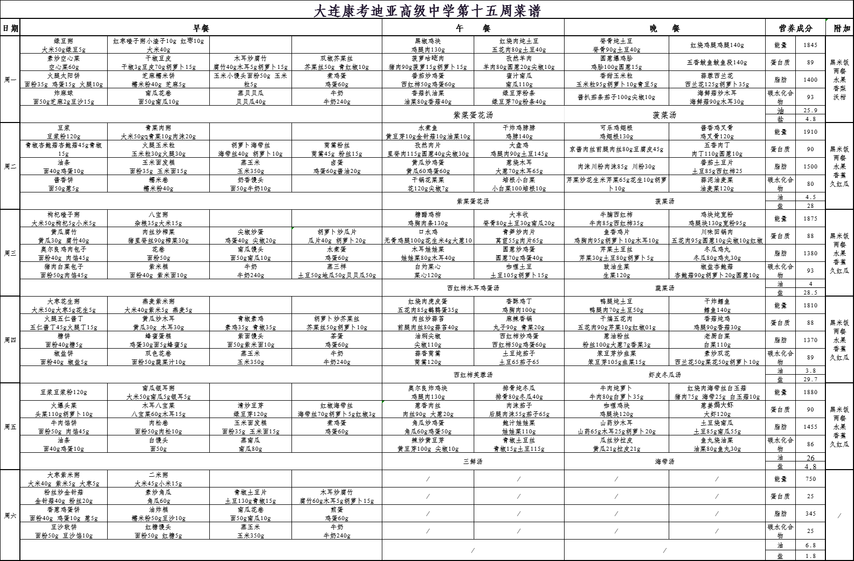 大连市康考迪亚高级中学第十五周食谱(6.9-6.13)