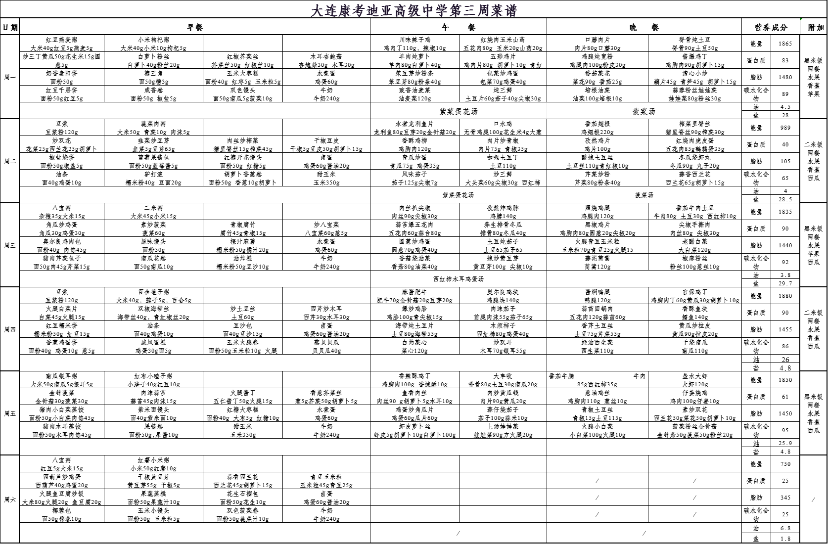 大连市康考迪亚高级中学第三周食谱(9.15-9.20)