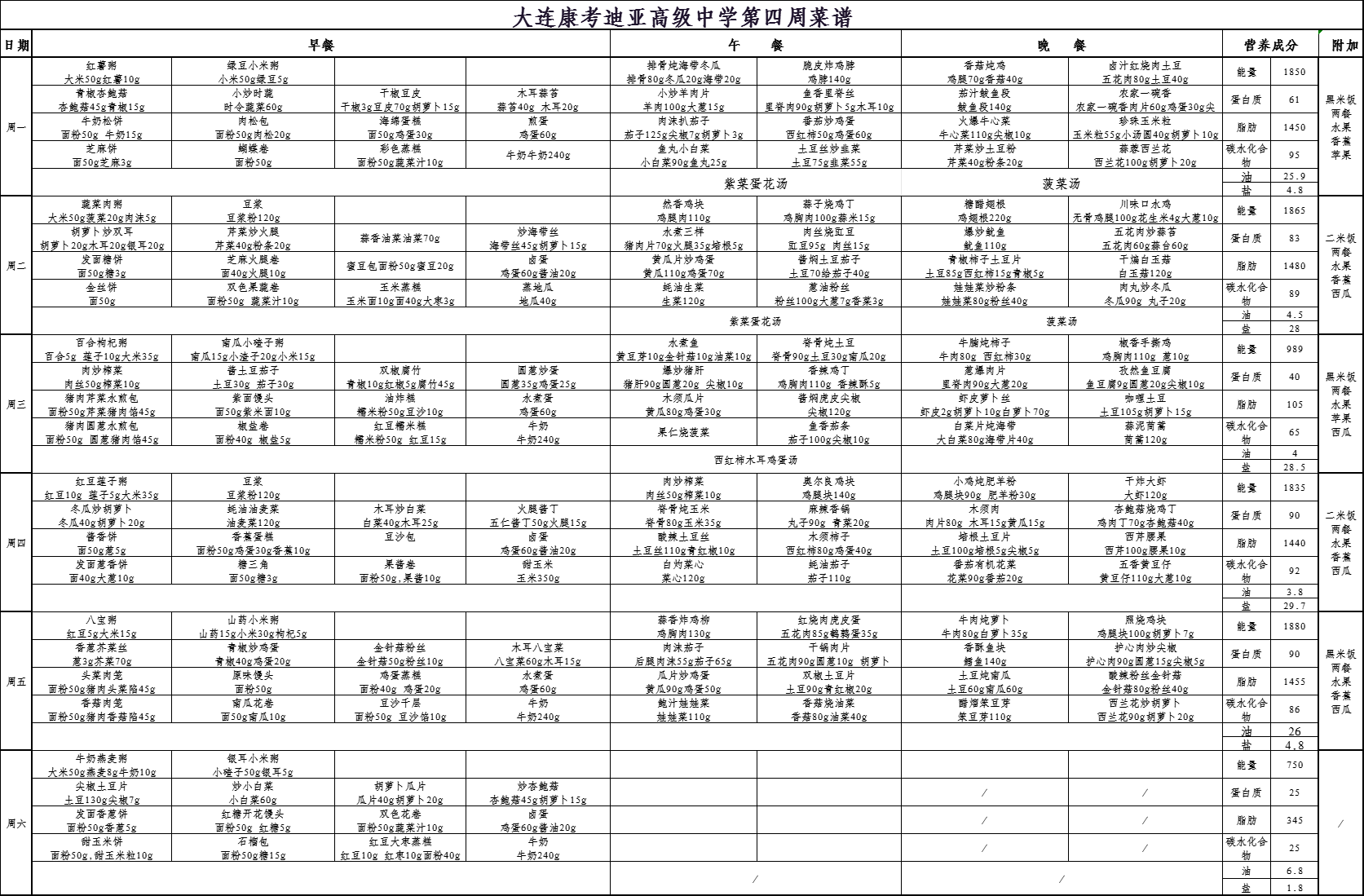 大连市康考迪亚高级中学第四周食谱(9.22-9.27)