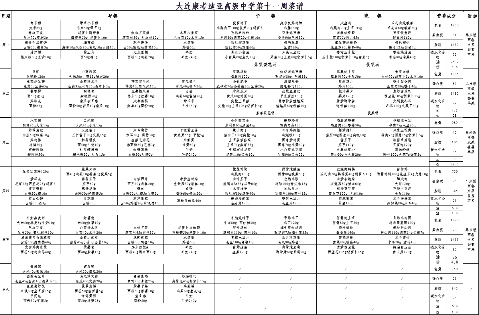 大连市康考迪亚高级中学第十二周食谱(11.17-11.22)