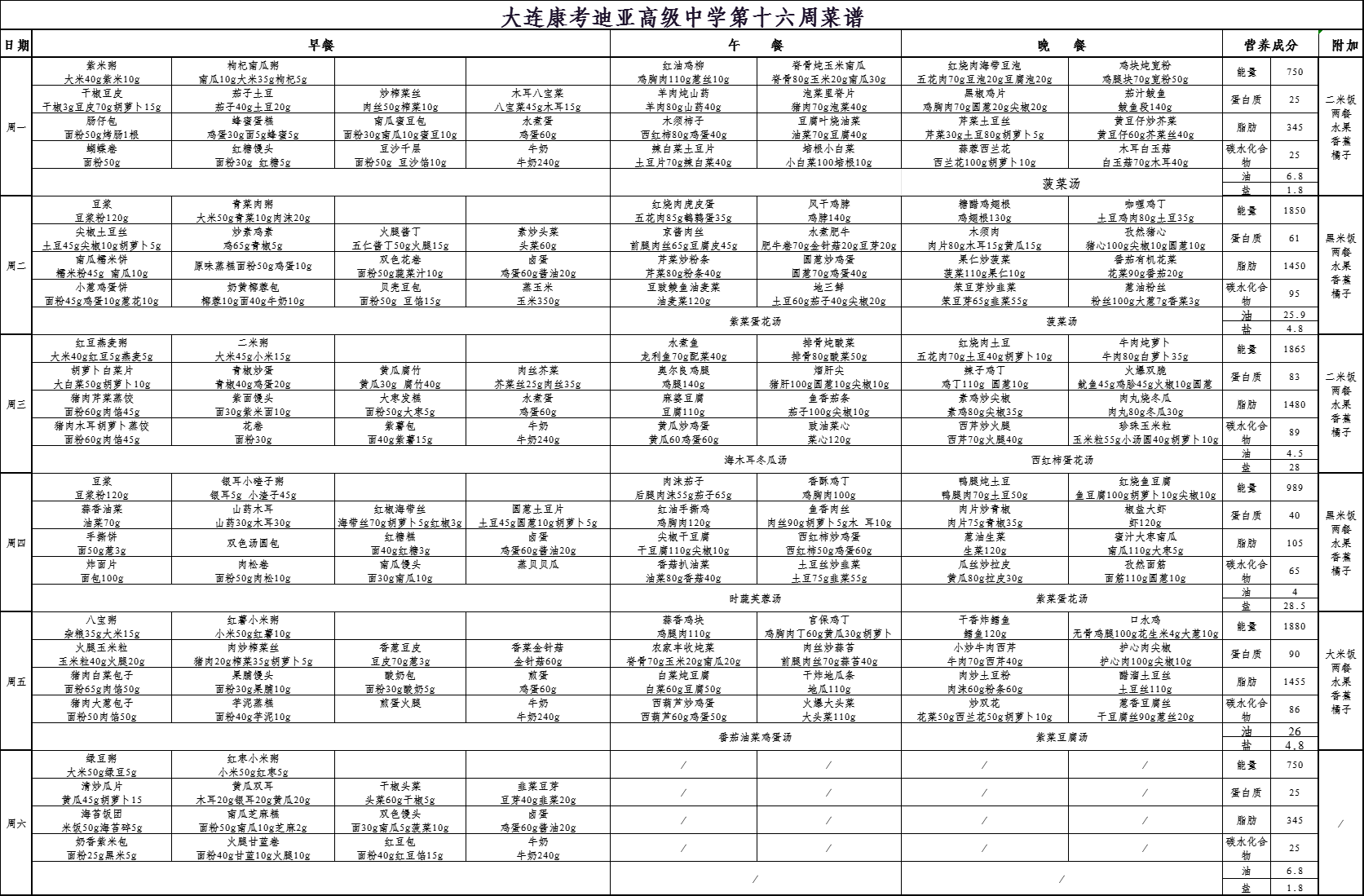 大连市康考迪亚高级中学十六周食谱(12.15-12.20)