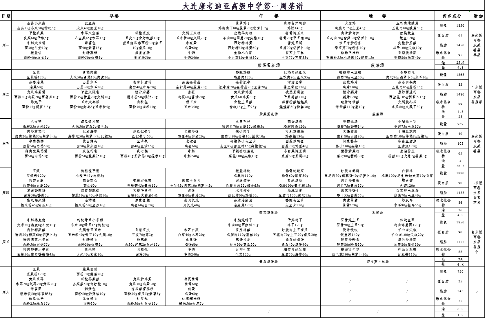 大连市康考迪亚高级中学第一周食谱(3.2-3.7)