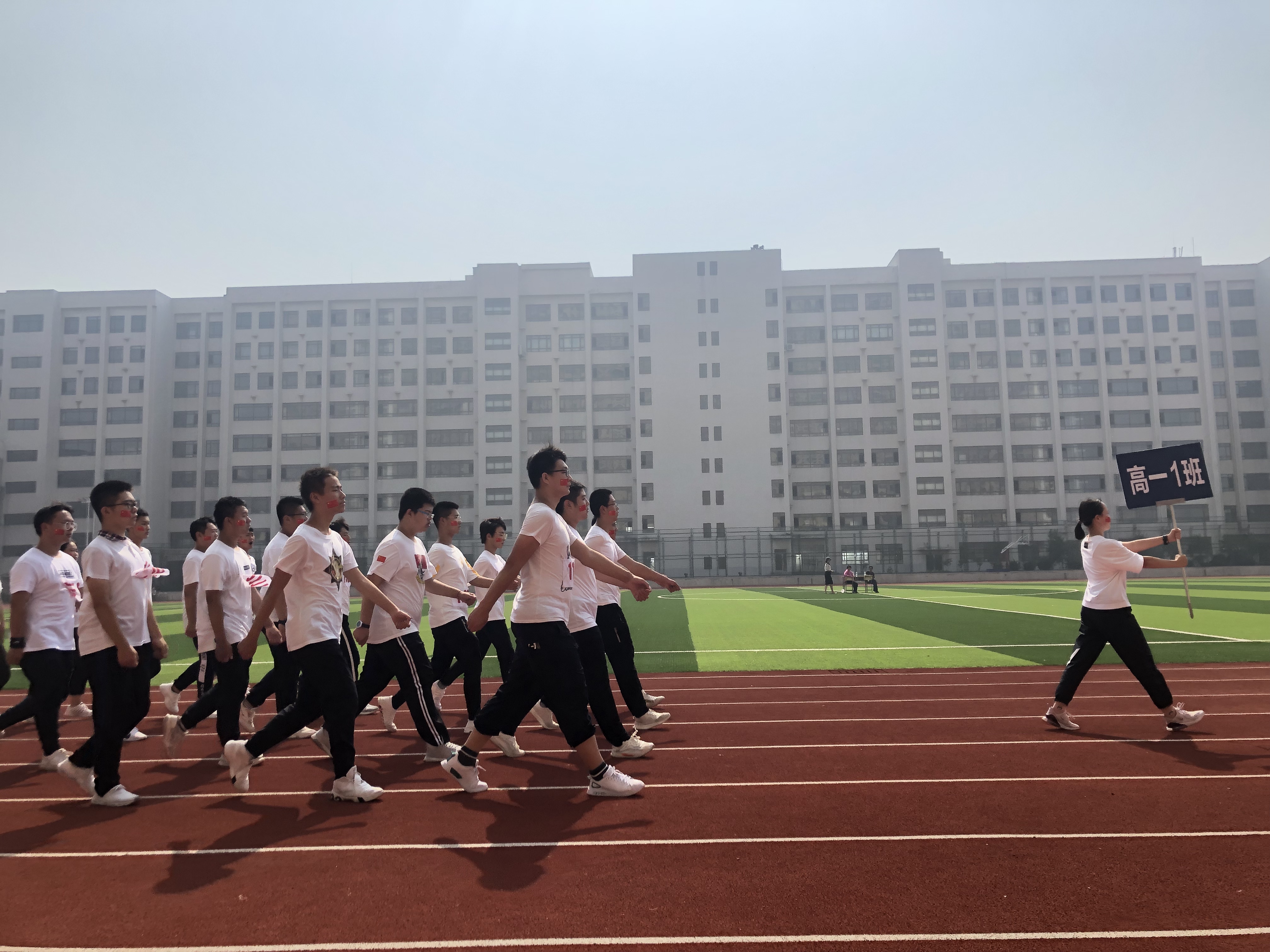 开幕式上,各班运动员伴随着激昂的运动员进行曲步入会场。学生们的脸上洋溢着青春自信的笑容,踏着整齐有力的步伐,高喊着嘹亮有力的口号,昂首阔步的走过主席台接受检阅,赢得了观众席的阵阵掌声。