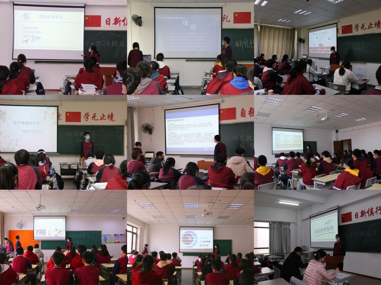 为有效落实普通高中课程方案,让学生学会学习、学会探究、学会合作、学会创新,提高学生的创新精神和实践能力,我校于2021年12月14日下午召开2021-2022学年度研究性学习开题报告会,本次会议分为11个会场同时进行,高一、高二年级学生、各位研究性学习指导教师参加了本次开题报告会。